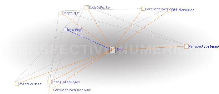 J'y explore des points de vue sur la notion de perspective numérique et plus généralement de perspective anoptique. On y trouve quelques papiers et diverses notes plus ou moins d'actualité. Qu'est-ce que la perspective numérique ? Il s'agit d'une conjecture : nous serions les acteurs d'une invention majeure, analogue à la perspective spatiale, qui marqua le passage du monde hiérarchisé du Moyen Age, à celui, géométrisé, de la Renaissance ; analogue aussi à la perspective temporelle née il y a deux siècles avec l'invention du télégraphe, et qui domine actuellement (ses points de fuite sont les émetteurs de télévision, les moteurs de recherche et les sites web que nous connaissons). La perspective numérique, elle, est fondée, non pas sur des points de fuite comme les deux précédentes perspectives, mais sur des codes de fuite, de nature numérique, biologique, génétique, voire quantique, capables d'organiser des formes de commutation a-centrée, synchrone ou asynchrone, à l'intérieur de la communauté humaine. Cette dernière perspective serait amenée à prendre le pas sur les précédentes. Elle laisse entrevoir des bouleversements de tous ordres, comparables (ou incomparables?) à ceux que vécurent les Renaissants. DERNIERES NOUVELLES