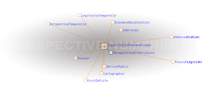 Le territoire et le régime de légitimité temporel Légitimité par impartialité: pas sans risqueEn dépit des efforts consentis, l' e-administration et les e-services publics dérogent aux canons de la légitimité temporelle sur de nombreux points. Pour ce qui est des services traditionnels de l'' e-administration, la centralisation du traitement de l’information réduit toujours plus le nombre de ceux qui peuvent en infléchir les règles, en même temps qu'elle augmente la vitesse avec laquelle ces règles peuvent changer selon les revirements du pouvoir législatif. Cela peut être vu comme un gage de souplesse et d'adaptabilité cohérent avec le regime de légitimité temporel, à condition que la population se reconnaisse dans le point de fuite que le pouvoir lui présente. Le risque est ici de voir se produire une sorte d'ossification des normes politiques et sociales existantes, qui ne donne pas la possibilité au corps social de les réexaminer, et donc de créer au passage de nouvelles relations, de nouveaux sens et de nouvelles solidarités. Pour ce qui est des initiatives de e-services des collectivités, voire de l'Etat ou des ses agences, beaucoup dépassent largement le périmètre traditionnel des services publics. Elles investissent par exemple les domaines du débat public et de la citoyennenté ou bien dans celui de la valorisation du territoire en terme de tourisme, d'urbanisme et d'aménagement, de culture, d'industrie et de services. Pour des raisons de validation de l'information publique, ces e-services peinent à mettre en oeuvre pleinement toutes les possibilités de l'Internet. En particulier ils ne laissent pas les internautes co-construire ou intervenir sur les cartes sociales ou géographiques comme le font beaucoup de sites privés ou communautaires. Le risque est là que ces e-services exerçent une concurrence sur les services similaires proposés par lesdits acteurs privés ressentis parfois comme plus légitimes par les internautes. Certains de ces acteurs privés, implantés sur le territoire visé, sont ainsi freinés dans leur développement économique. En résumé, à la lumière de la perspective temporelle, l'écueil qui guette tous les e-services territoriaux et l'' e-administration est qu'ils fassent figure de rhétorique institutionnelle ou de communication électorale, bref qu'ils appraissent comme de purs produits de l’ économie de l’attention.