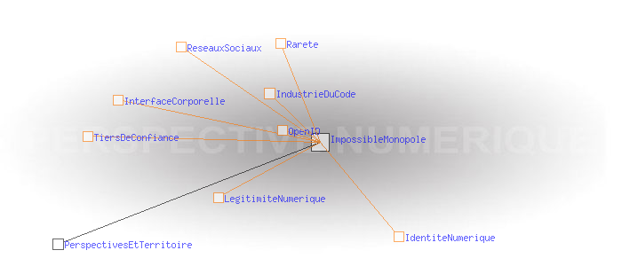 Le territoire aux prises avec le régime de légitimité numérique L'impossible monopoleNon seulement la rareté des codes est amenée à disparaître, mais le régime de légitimité numérique en germe dans le réseau voudrait que ces codes soient contrôlés par les utilisateurs eux-mêmes, y compris et surtout l' identité numérique personnelle. Les premiers à être placés sous cette pression, les plus grands acteurs de l'Internet, se sont déjà engagés dans cette voie en adoptant le protocole libre de gestion de l'identité OpenID. Ce protocole permet à chacun de gérer son identité, là où il le désire, c'est à dire chez un tiers de confiance ou bien sur son propre terminal, et comme il le désire, c'est à dire en contrôlant les fragments de lui-même qu'il montre ou pas, à tel organisme ou tel interlocuteur. Contre toute attente, des multinationales ont donc renoncé à être les dépositaires exclusifs des identités. Bientôt sous la pression du régime de légitimité numérique, elles renonceront aussi au contrôle des réseaux sociaux et aucune industries du code ne pourra prétendre avoir quelque prise que ce soit sur ces données. ![]()