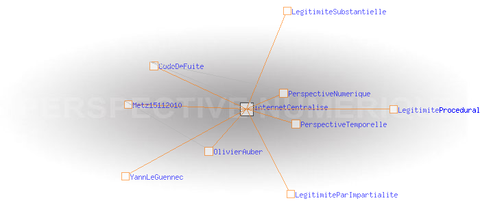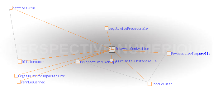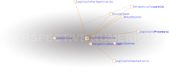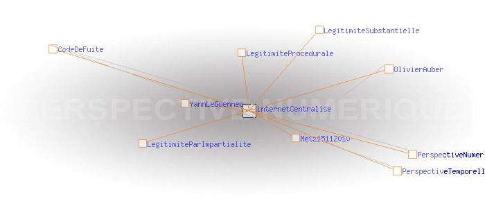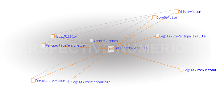 Black cross is made with your IP address, by YannLeGuennec (Archive) Internet centralisé? hiérachique? acentré?Une petite note en passant à propos des projets de DNS P2PJe ne suis pas le seul à écrire que l'internet est centralisé, et Bortzmeyer ne pourra pas dire que celui-là (Huitema) est un "ignorant" Cela dit, il faut se mettre d'accord sur ce que veut dire mot "centralisé" utilisé de manière lapidaire dans un tweet ou dans un billet de blog. Techniquement, l'internet, en particulier son espace de nommage, est effectivement "hiérarchique", mais tel qu'il est structuré pour le moment, il crée une situation politiquement "centralisée", en dépit des déclarations de Rod Beckstrom qui voudrait éviter qu'elle n'apparaisse trop comme telle. Il me semble que l'une des grandes vertus de l'affaire Wikileaks pourrait être de mettre à découvert pour l'entendement du plus grand nombre, la structure et le fonctionnement de l'internet, non pas bien entendu dans ses détails techniques, mais politiques et imaginaires, et de forcer ses parties prenantes à travailler ensemble sur la "légitimité" des " perspectives anoptiques" mises en oeuvre par le réseau. Des pistes existent pour le système de nommage puisse passer un jour d'une " perspective temporelle" (physiquement centralisée à l'instant T d'une mise à jour majeure) à une " perspective numérique" physiquement acentrée mais admettant une nouvelle règle du jeu comme " code de fuite". Quoi qu'il en soit, il faudra bien s'interroger sur les critères de légitimité de cette perspective: