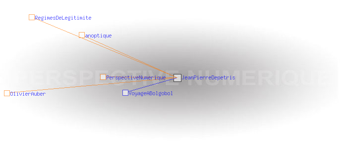 Jean-Pierre Depétris dixit:"Pour autant que j'aie compris l'essentiel, il me semble que dans cette perspective, qu'on peut bien appeler numérique, chaque point peut en être le centre, bien qu'elle conserve toujours un ordre et une structure. Ce qui signifie ipso facto que cet ordre et cette structure se démultiplient par autant de centres, ou encore, qu'il n'y a pas un ordre et une structure, mais des infinités. Dire qu'il y a une infinité d'ordres, cela peut signifier qu'il n'y en a aucun. C'est du moins ainsi que la pensée moderne se limite à le comprendre. En réalité, il y en a toujours au moins un. C'est pourquoi on peut les-dire virtuels, ce qui ne s'oppose évidemment pas à réels. Quand nous regardons un tableau, le point de vue est fixé une fois pour toutes. C'est pourquoi l'espace y est proprement construit. Quand nous regardons un paysage réel, nous pouvons nous déplacer ; le point de vue est toujours différent (sans devenir moins réel), et l'espace ne continue pas moins à s'organiser autour de ce point, dont je pourrais aussi bien dire « c'est moi ». Nous n'avons pas à construire l'espace, il se construit seul, comme la perspective spatiale. Ce qui est nouveau, c'est que nous disposons maintenant de programmes qui peuvent reconstruire cette perspective à chaque instant pendant que nous circulons dans un espace virtuel. Il est intéressant de se demander qu'est-ce que cela change pour un artiste qui crée un paysage en trois dimensions par rapport au peintre qui dessinait l'espace en deux. Cette question est ouverte, il n'y a sans-doute pas de réponse définitive, et la poser est de nature à l'ouvrir davantage. Il est à noter aussi que la photographie changea la perspective spatiale. En effet, le photographe est moins tenté de reconstruire l'espace pour l'adapter à son point de vue que de le parcourir pour y trouver le meilleur — attitude qui commença bien avant avec les paysagistes. On pourrait observer aussi que la perspective spatiale de la géométrie a été très tôt dépassée par les coordonnées (Descartes) et les fonctions (Leibniz), et qu'on peut trouver là le point de départ de la perspective numérique, jusqu'à la géométrie in situ de Poincaré et les théories du chaos. En tout cas, on peut voir clairement ce que dans cette perspective devient ce qu'on appelle l'individu, ou le dividu, la personne, ou encore le bonhomme, disons « moi ». Je deviens le centre, le centre sinon rien. Peu importe l'IP, le numéro d'INSEE ou quelque identifiant, mais ce qu'il identifie : le centre. Par exemple Olivier Auber et son projet /p/anoptique avec tout ce qui gravite autour : quelque chose d'assez immense, en somme, mais qui ne gravite pas moins aussi autour des autres points qui gravitent autour de lui, et cela réellement. Voilà ce qu'est censé identifier un identifiant : un centre. C'est mathématiquement complexe, mais intuitivement évident. Il est probable que si l'on se familiarisait avec le bibi de Boby Lapointe, qui aide à manipuler des combinatoires plus complexes, ce serait mathématiquement plus simple. Il semblerait pourtant au premier abord que ce soit la personne qui se dissolve, qui se diffracte en autant d'identifiants ; la personne, donc le centre, l'ordre, la structure. Loin de s'inquiéter d'une telle dilution qui menace tout ancrage au réel, on y voit le plus souvent un gage de liberté et de confidentialité. Il importe qu'on ne puisse identifier le même bonhomme sous ses différents avatars. Mais quel bonhomme identifierait-on en réalité, sinon un avatar de plus ? Et en quoi seulement, si l'on arrive à trouver le fil qui relie ces avatars entre eux, cela ferait-il un bonhomme réel ? L'État devient alors le dispensateur ultime de l'identité. Le grand oracle auquel on pense pouvoir adresser la question « qui suis-je réellement ? » C'est pourquoi il tend à devenir là où la confidentialité s'arrête. Il se fait le garant ultime qu'il y aurait bien quelqu'un derrière le masque, c'est-à-dire donc le symptôme que l'on puisse en douter. Il est quand même essentiel que nous puissions reconnaître en un autre être humain, non pas une identité, dont nous n'avons rien à faire, même pas un égal, mais plutôt un ego ; c'est-à-dire à peu près, quelqu'un qui puisse lui aussi triompher du doute cartésien pour y trouver prise à quelques certitudes, ou, si l'on veut, quelqu'un qui, par rapport à nous, ait un autre point de vue, et qui puisse, disons, nous tenir informé de ce qu'il voit de là où il se trouve." - - - - - - Sublime, ta chute, "je" la trouve Pour répondre à la première partie de ton texte que je résumerais par: "dire qu'il y a une infinité d'ordres, cela peut signifier qu'il n'y en a aucun", c'est le 'peut signifier" qu'il faut interroger à mon avis. En effet, cela peut signifier tout l'inverse. De la même manière qu'il y a concurrence des centres dans les perspectives spatiale et temporelle, cette concurrence existe aussi en matière de perspective numérique. Si le sacro-saint principe 'the winner takes all" est vrai, l'une devrait l'emporter sur l'autre, par exemple Iphone versus Androïd. Ce qui se joue à mon sens dans cette concurrence est affaire de légitimité, et mon hypothèse est que de cette légitimité, chacun pourra bientôt en juger grâce à un phénomène d'acculturation extrêmement rapide aux canons de la perspective numérique, infiniment plus rapide que celui qui a prévalu à la Renaissance pour la perspective numérique ou lors de la révolution industrielle et de l'avènement de télécommunications pour la perspective temporelle. C'est ce phénomène que j'imagine être la véritable l'essence de la "singularité" annoncée ici ou là. "Singularité" peut aussi vouloir sire scission ; il y aurait ceux qui choisiraient un code, et les autres le code concurrent, et ces deux blocs s'affronteraient peut-être (ou évidemment) comme les Etats de l'Est et de l'O