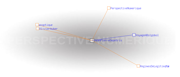 Je deviens le centre, le centre sinon rien. Peu importe l'IP, le numéro d'INSEE ou quelque identifiant, mais ce qu'il identifie : le centre. Par exemple Olivier Auber et son projet /p/anoptique avec tout ce qui gravite autour : quelque chose d'assez immense, en somme, mais qui ne gravite pas moins aussi autour des autres points qui gravitent autour de lui, et cela réellement. Voilà ce qu'est censé identifier un identifiant : un centre.