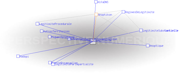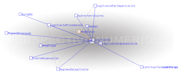 A) Tout agent A a-t-il le droit réel d’accéder au réseau s’il en fait la demande? A peut-il quitter le réseau librement ? AB) Tout agent B (présent ou futur, y compris les agents qui conçoivent, gèrent et développent le réseau) est-il traité comme A ? ABC) Si trois agents A, B et C (trois étant le début d’une multitude) appartiennent à un réseau qui répond aux deux premiers critères, constituent ils des pairs? Autrement dit, sont-ils en mesure de se reconnaître, de se faire confiance, de se respecter les uns les autres, de construire des représentations communes et du sens commun ? Voir Pages ayant un lien vers la page courante : AlfaDNS Anoptique AutresTerritoires Hadopi LegitimiteParImpartialite LegitimiteProcedurale LegitimiteSubstantielle LeVirtuelTechnoAnthropologique MiguelBenasayag PierreRosanvallon RegimesDeLegitimite