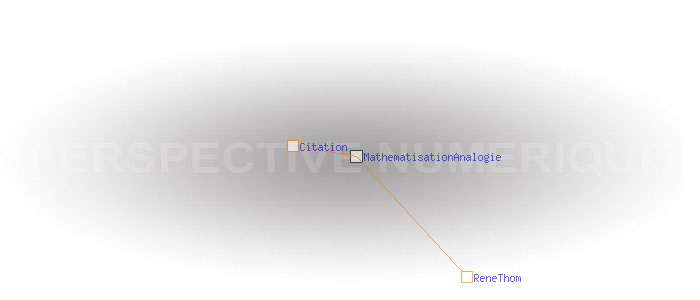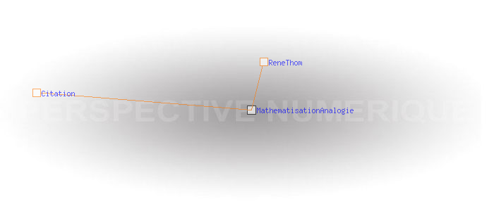 "L’analogie, la métaphore, contrairement à la vision commune qui en fait quelque chose d’approximatif, de flou, m’apparaît comme une relation stricte et que l’on peut, dans bien des cas, exprimer mathématiquement [..] La vieillesse est le soir de la vie [..] La structure formelle de cette analogie, c’est simplement la notion de bord. Vous avez là un intervalle temporel ; cet intervalle a une fin ; on l’appelle "soir" ou " vieillesse" le voisinage tubulaire, si j’ose dire, du mot " fin", et la catastrophe correspondante est pour moi le pli." ReneThom Importé depuis l'adresse http://jeanzin.fr/ecorevo/philo/pretapen/thom.htm