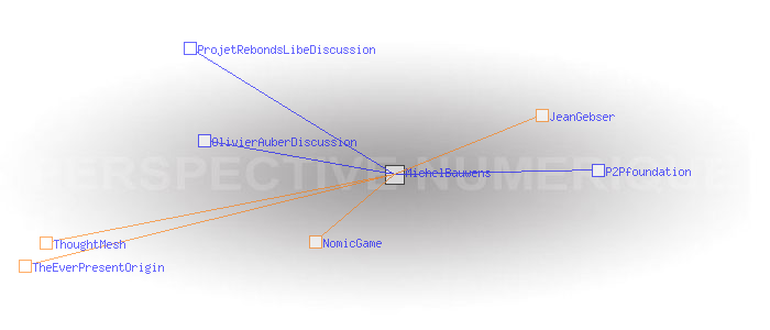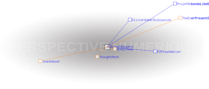 JeanGebser: TheEverPresentOrigin?. = une histoire des perspectives NomicGame?: jeu dans lequel on peut changer les regles http://anoptique.com/concept.html ThoughtMesh http://del.icio.us/rss/mbauwens