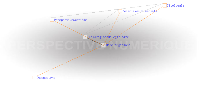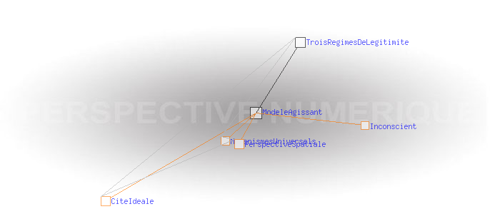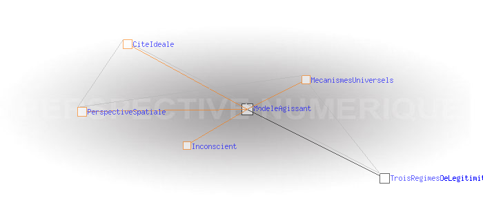 Un modèle agissantLa perspective spatiale de la Renaissance a objectivé un modèle sensible de la relation du temps à l'espace, le support du tableau étant déjà là pour le diffuser. L’Internet donne à son tour un support totalement nouveau pour l'exercice des mécanismes ancestraux relatifs à l'information et au code. Pour la première fois, ceux-ci peuvent être quantifiés, mesurés, et visualisés. Et ils ne manquent pas d'être aussi instrumentalisés. Comme l'a fait la perspective spatiale pour le temps et l'espace, les perspectives temporelle et numérique sont susceptibles de fournir à tous des règles simples permettant de se situer dans les processus liés à l'information et au code de façon à pouvoir en évaluer les configurations et retrouver une certaine autonomie par rapport à eux. Cela passe par la modélisation des cités idéales que ces processus construisent implicitement et qui agissent au niveau de notre inconscient sur la manière dont nous percevons notre monde et dont nous agissons sur lui. Ces nouvelles cités idéales prennent comme modèle celle de la perspective spatiale, mais les régimes de légitimité qui en découlent sont très différents.
