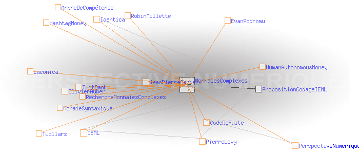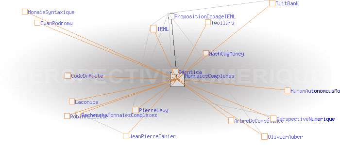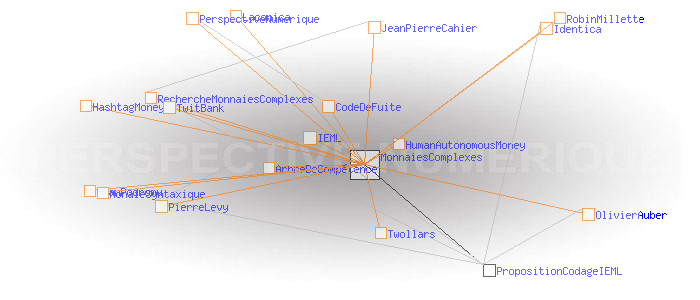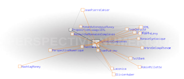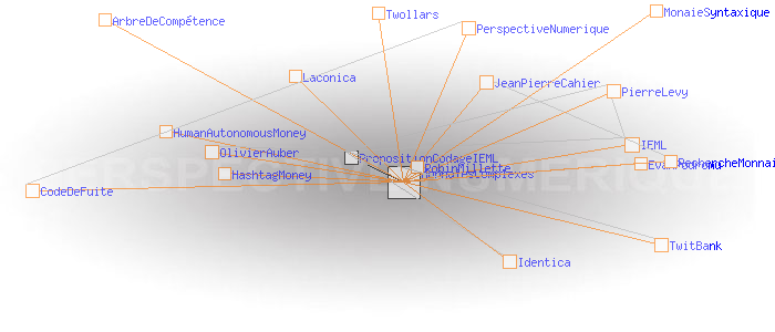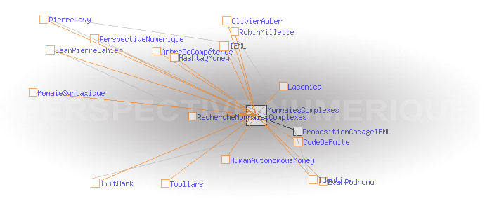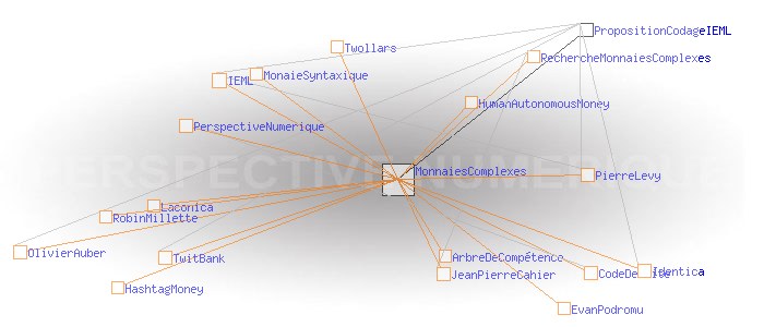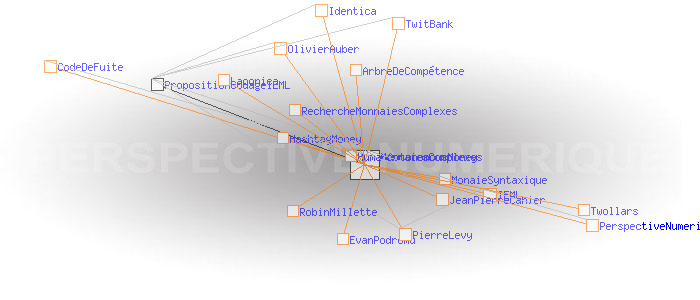 "OlivierAuber discute avec Jean-Pierre Cahier: "pour un programme de recherche sur l'argent complexe" http://tinyurl.com/ckjf3h #hashtagmoney"A propos des monnaies complexes J'ai été ravi de rencontrer le 24 mars 2009 JeanPierreCahier qui dans un article écrit il y a dix ans visualisait parfaitement le l'éclosion des monnaies complexes à laquelle nous assistons et participons aujourd'hui. Malheureusement, le programme de recherche auquel il aspirait n'a jamais été lancé, et c'est un peu à l'aveuglette et dans l'urgence que nous sommes aujourd'hui contraints d'avancer... Le travail d'Eikosant et de Glenux sur Twollars et TwitBank me semble déterminant (merci à eux) pour l'exploration de la notion de HashtagMoney / MonaieSyntaxique? / MonnaiesComplexes / HumanAutonomousMoney . Il me semble aussi qu'il faut faire le lien avec l'IEML et les arbres de compétences de PierreLevy comme possible système de codage des éléments échangés, ainsi qu'avec Laconica? /Identica (Twitter acentré) d' EvanPodromu? et de RobinMillette?, comme possible infostructure. Reste qu'il demeure un océan de questions, en particulier celle évoquée par Jean-Pierre Cahier de la cristallisation de ce qu'il appelle 'l'linstitution de l'argent" au sein de l'interface. A mon sens, en même temps que nous expérimentons la variété des monnaies complexes, nous sommes amenés à faire émerger une sorte de norme d'interopérabilité leur permettant de fonctionner ensemble. Cette norme est pour moi le CodeDeFuite de la PerspectiveNumerique qui s'invente sous nos yeux. C'est un phénomène de portée anthropologique qui ne va pas manquer de convoquer toutes les ressources théoriques et technologiques disponibles. OlivierAuber
