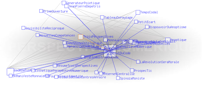 La perspective numérique est fondée non pas sur des points de fuite, mais sur des codes de fuite, de nature numérique, biologique, génétique, voire quantique, capables d'organiser des formes de commutation acentrée, synchrone ou asynchrone, à l'intérieur de la communauté humaine.
