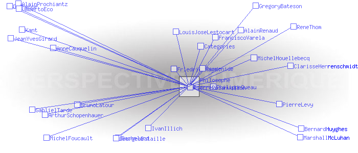 Philosophes citésRetour la liste des catégories Pages ayant un lien vers la page courante : AlainProchiantz AlainRenaud AnneCauquelin ArthurSchopenhauer Bachelard BernardHuyghes BrunoLatour ClarisseHerrenschmidt Dufrenne FranciscoVarela FriedrichHayek GablielTarde GeorgesBataille GregoryBateson IvanIllich JeanYvesGirard Kant LouisJoseLestocart MarshallMcLuhan MichelFoucault MichelHouellebecq Parmenide PhilippeQueau PierreLevy PierreRosanvallon ReneThom UmbertoEco