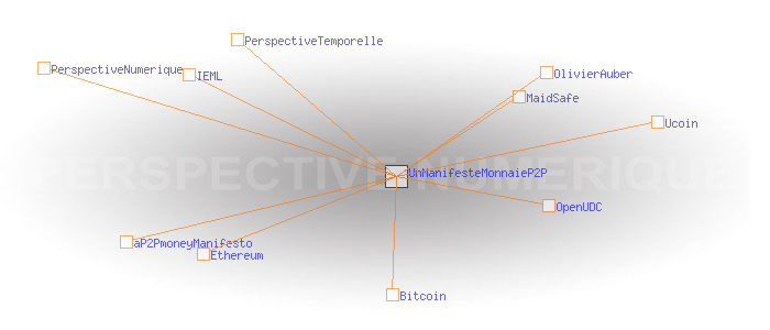 Ce texte est publié sous Licence Art Libre. La crise financière globale a fait émerger quantité de monnaies alternatives, qui tentent de générer un nouvel écosystème. En tant qu’agents de ces mutations, nous sommes le plus souvent en position de « sélectionnés » selon les critères de sélection darwiniens, laissant le soin aux réseaux de façonner notre imaginaire et nos jugements. Le présent manifeste avance que « nous pouvons choisir de nous placer en tant que “sélectionneurs” ». Voici comment. PDF de ma conférence à l'INRIA dans le cadre le FOSSA2014 My talk (in english) : aP2PmoneyManifesto - - - (un) manifeste pour une alternative monétaire P2P OlivierAuber, le 8 septembre 2014. Alors que le système monétaire mondial semble se disloquer de toutes parts, les modèles monétaires alternatifs(1) pullulent telles des générations spontanées d’espèces quasi-vivantes proliférant sur le terrain de nos échanges. On sait que ces modèles se combineront entre eux, muteront ou disparaîtront pour établir finalement un nouvel écosystème. Pour tenter d'accélérer la transition vers un modèle monétaire durable dans lequel les hommes pourront se reconnaître entre pairs, le présent manifeste propose aux acteurs de la mutation que nous sommes, non pas de nous laisser sélectionner par ces modèles suivant notre capacité à nous y conformer, mais de nous comporter en sélectionneurs, c’est-à-dire de leur appliquer des critères de sélection darwiniens. Explosions de codes La première explosion de « codes » est nommée « abiogénèse » : c’est le passage d’un monde sans biologie à un monde biologique. Chaque être vivant (procaryotes, eucaryotes, métazoaires) est défini par un code régissant sa forme et sa reproduction. La plupart des espèces apparues lors de l’abiogénèse ont disparu ou muté, tandis qu’un petit nombre a proliféré. La deuxième explosion de « codes » a été nommée récemment (2) « atechnogénèse » : c’est le passage d’un monde sans technologie à un monde avec. On peut faire remonter l’atechnogénèse à l’apparition du genre Homo, c’est-à-dire à l’irruption d’un protolangage chez certains hominidés. Le catalyseur de cette deuxième explosion de codes, non plus biologiques, mais symboliques, aurait été selon certains chercheurs (3), l’invention des armes, bien avant celle du feu. L’arme dans sa version la plus préhistorique aurait rendu brutalement obsolète l’ordre social basé sur la domination physique propre aux hominidés, car elle leur aurait permis de tuer leurs semblables sans trop de risque. Brutalement l’ordre entre dominants et dominés basé sur la force physique, se serait brisé et cette crise politique aurait imposé à l’espèce un immense stress. Les individus présentant des comportements adaptés auraient été sélectionnés, à savoir ceux qui se sont montrés capables à la fois de repérer des faits saillants dans l’environnement et de les communiquer à leurs congénères, par un geste de la main, une vocalisation, plus tard par un langage de plus en plus articulé. Le langage aurait été ainsi la Stratégie Évolutionnaire Stable (4) permettant de détrôner la force brute pour devenir l’élément moteur de notre organisation sociale. La monnaie comme arme Les armes ont continué à co-évoluer avec notre langage, et la plus raffinée d’entre elles - car invisible et essentiellement d’ordre logique -, est sans doute la machine infernale de la monnaie et du capital. La monnaie, avec le code source que nous lui connaissons, forgé depuis 5000 ans (5), est une machine à concentrer le capital, qui lui-même est investi prioritairement dans des moyens de concentrer la monnaie. Cette boucle tautologique, offensive ou dissuasive suivant les cas, institue notre ordre social. Cependant, l’ordre monétaire semble se craqueler depuis peu : le capital - traditionnellement vu comme l’accumulation des stocks et des moyens de production–, se dématérialise soudainement sous la forme de valeurs économiques et symboliques complexes, de robots et d’intelligences artificielles travaillant automatiquement pour leur propre puissance. Cette concentration exponentielle laisse autour d’elle de vastes zones désertiques, où la monnaie comme les autres valeurs économiques et symboliques y sont maintenues sous perfusion. Le code carnivore de la monnaie, fondé sur son mode de création par la dette, apparaît donc de plus en plus comme un bug conduisant inéluctablement à l’autodestruction du système quasi-vivant qu’il a engendré. Ainsi, tout se passe comme si l’emballement de cette tautologie rendait brutalement obsolète l’ordre social basé sur la maîtrise du langage, car elle permet à une sorte de machinerie de tuer sans risque nos semblables – sans discernement -. À tel point que notre espèce semble aujourd’hui soumise à un stress politique comparable à celui qui avait conduit à l’invention du langage. En réponse, des codes monétaires alternatifs voient le jour. Ils sont, n’en doutons pas, autant d’armes capables de faire émerger un nouvel ordre social. Parmi eux, se cache notre nouvelle Stratégie Évolutionnaire. Comment la détecter, la construire, la sélectionner ? Perspectives anoptiques Pour nous aider, on peut tenter d’observer un fait passé relativement inaperçu depuis le début de la Révolution Industrielle, plus particulièrement depuis l’émergence des télécommunications : c’est l’irruption de deux nouvelles « perspectives (6) » analogues à la « perspective spatiale » qui avait marqué le passage du monde hiérarchisé du Moyen-âge à celui géométrisé de la Renaissance. En effet, les réseaux sur lesquels circulent toutes les valeurs économiques et symboliques, peuvent fonctionner selon deux architectures, - centrée ou acentrée - , qui réalisent des formes de construction « en perspe