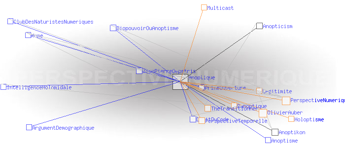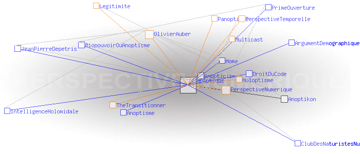 Concept de l'anoptismeAnoptism (english)Le concept d'Anoptisme est bien entendu à l'opposé de celui du " panoptisme", du grec "pan" (tout), qui "est un type d'architecture carcérale imaginée par le philosophe Jeremy Bentham" dont "'l'objectif [...] est de permettre à un individu d'observer tous les prisonniers sans que ceux-ci ne puissent savoir s'ils sont observés, créant ainsi un « sentiment d'omniscience invisible » chez les détenus" (1). Le concept d' "Anoptisme" s'écarte aussi dans une certaine mesure de celui de l'"Holoptisme", du grec "holos" (entier, tout, totalité), qui "consiste en un espace physique ou virtuel dont l'architecture est intentionnellement conçue pour donner à ses acteurs la faculté de voir et percevoir l'ensemble de ce qui s'y déroule" (2). A en juger par l'opposition des racines grecques, on pourrait même croire qu'il y a un antagonisme radical entre Anoptique et Holoptique. Ce n'est pas tout à fait le cas : si l'Anoptisme, comme l'Holoptisme, "visent à fournir à l'individu une représentation modélisée [...] de l'espace dans lequel il évolue" (3), l'Anoptisme fait son deuil de l'idée de "totalité" de cet espace comme de l'"objectivité" de sa représentation , et insiste au contraire sur l'arbitraire et la subjectivité des points de vue qui président aux architectures et aux modèles qui les déterminent. Pour l'Anoptisme, les relations humaines ne sont pas réductibles à la mise en place d'une boucle de rétro-action cybernétique entre le groupe et l'individu ; l'essentiel est définitivement invisible à nos yeux. Le deuil de l'objectivité est rendu supportable par le fait que chacun est potentiellement auteur des points de vue, et acteur des règles et des codes qu'ils mettent en oeuvre. L'Anoptisme entend fonder de cette manière la légitimité d'une " perpective numérique" à mettre en oeuvre au sein des systèmes sociaux. Pratiquement, les réseaux centrés/décentralisés mettent en œuvre une " perspective temporelle" dont le centre est le "point de fuite" d'où émerge le temps subjectif du collectif. Classiquement, ce centre est un serveur. Les réseaux distribués mettent en œuvre une " perpective numérique" dont le "code de fuite" est le protocole sous couvert duquel le collectif échange Exemples: Multicast, BGP, Bitcoin, etc. Ces deux perspectives propres aux réseaux sont dites "anoptiques" en référence à la perspective optique de la Renaissance. Perspective optique et perspectives anoptiques possèdent en effet des caractéristiques symbolique similaires à celles de la perspective optique. En particulier, de la même manière que les Renaissants ont décrit les critères de " construction légitime" de la perspective optique, il possible de définir ceux permettant de créer une "perspective anoptique légitime". Ces critères n'ont plus rien de géométriques comme c'était le cas de la perspective optique, ils sont d'ordre cognitif. Ces idées sont développées dans le livre "Anoptikon, une exploration de l'internet invisible, échapper à la main de Darwin" (FYP éditions 2019) OlivierAuber (1) FrWikiPedia:Panoptique (2) TheTransitionner: Holoptisme (3) Ibid. (4) perspective-numerique.net ANOPTIQUE a aussi été un groupe de recherche informel entre 2004 et 2014 : http://anoptique.com Pages ayant un lien vers la page courante : Anopticism Anoptikon Anoptisme ArgumentDemographique BiopouvoirOuAnoptisme ClubDesNaturistesNumeriques DroitDuCode Home IntelligenceHolomidale JeanPierreDepetris PrimeOuverture