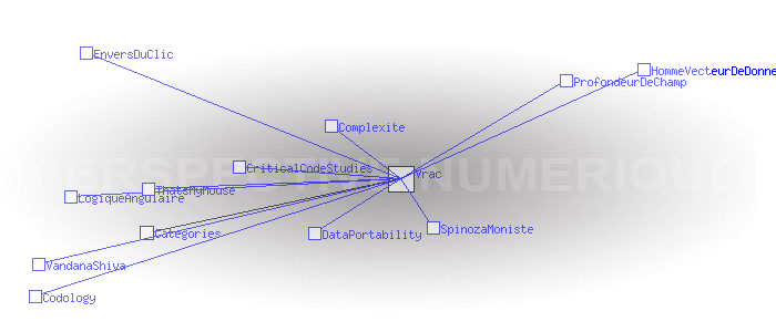 VracRetour la liste des catégories Pages ayant un lien vers la page courante : Codology Complexite CriticalCodeStudies DataPortability EnversDuClic HommeVecteurDeDonnees LogiqueAngulaire ProfondeurDeChamp SpinozaMoniste ThatsMyMouse VandanaShiva